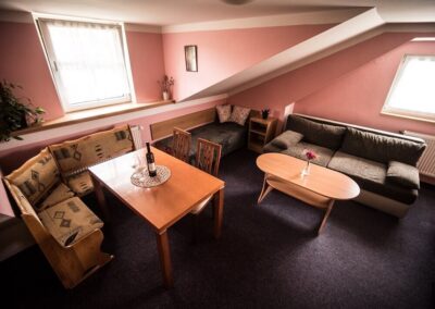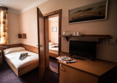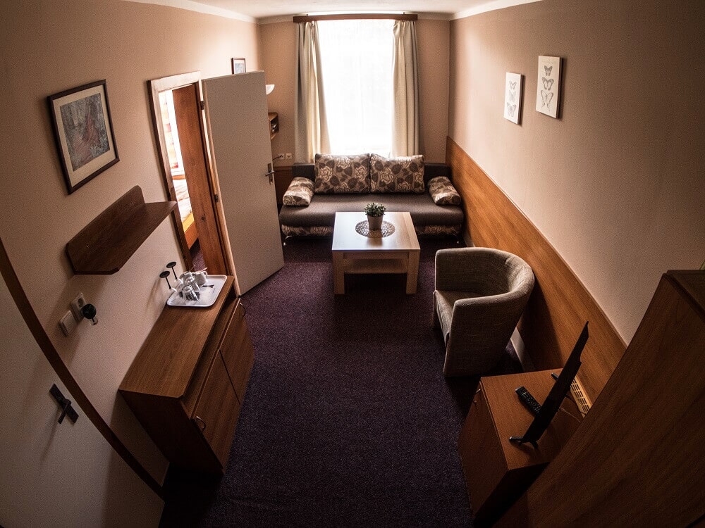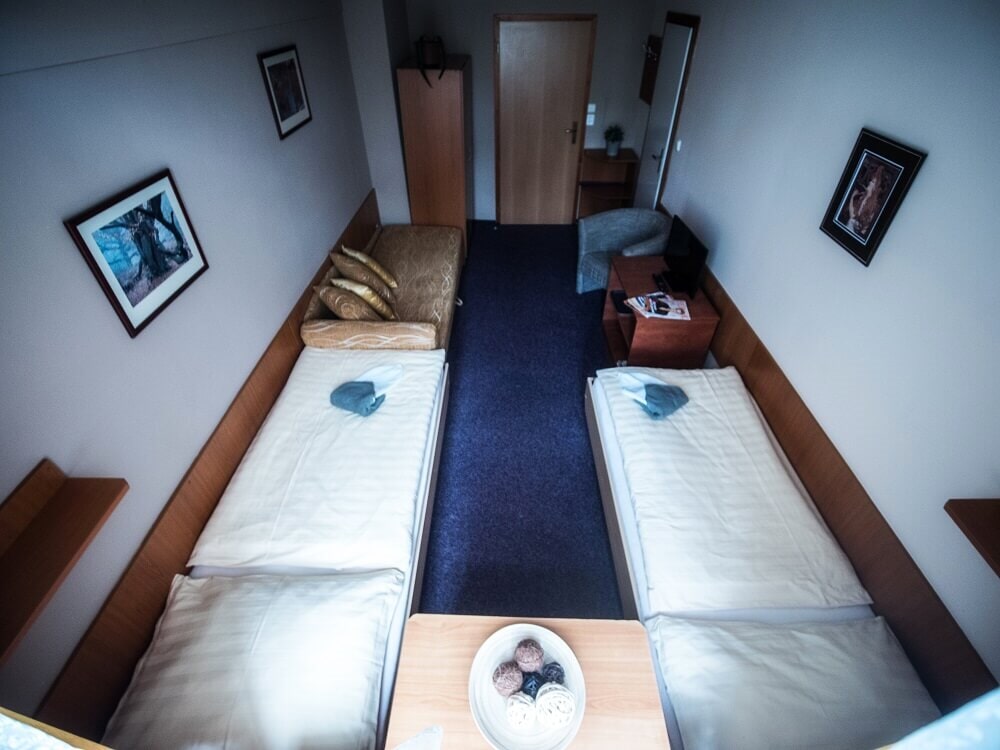 Ve standardních hotelových pokojích, v apartmánech hotelu či v tzv. suite. Nabízíme dvoulůžkové, trojlůžkové i čtyřlůžkové pokoje.