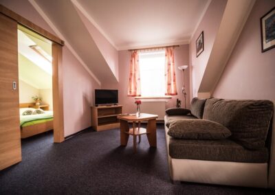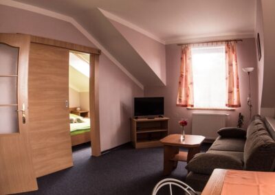 Ubytování v apartmánu hotelu zahrnuje obývací pokoj, ložnici, koupelny, TV + sat, internetovou přípojku, radiobudík, lůžkoviny, osušky, ručníky, hygienické potřeby, vybavený kuchyňský kout s chladničkou.